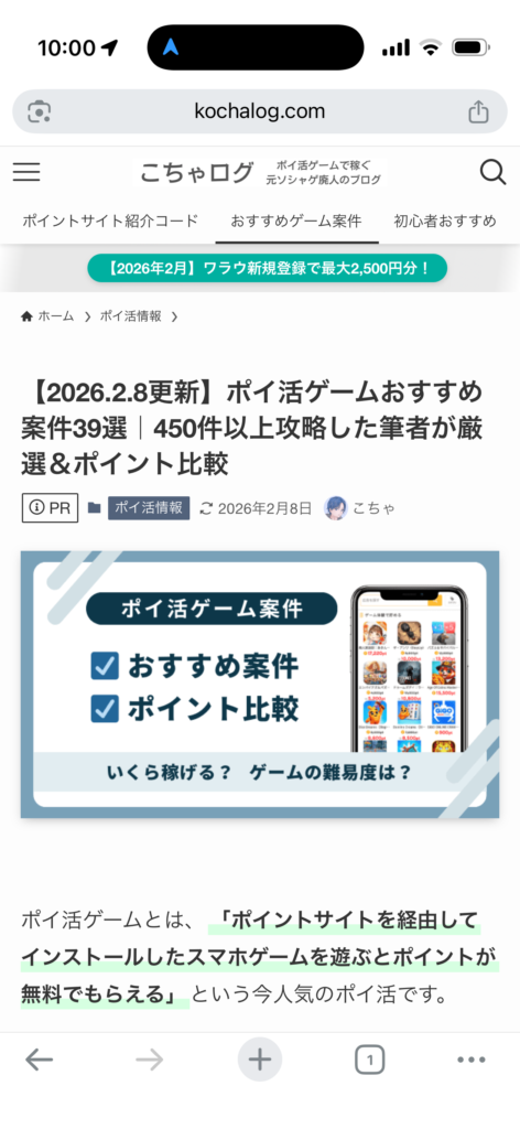 ゲームでポイ活の情報を書いてあるブログを検索して、「こちゃログ」さんを見つけたので、このサイトから挑戦できそうなものを選んで片っ端から挑戦してみます。