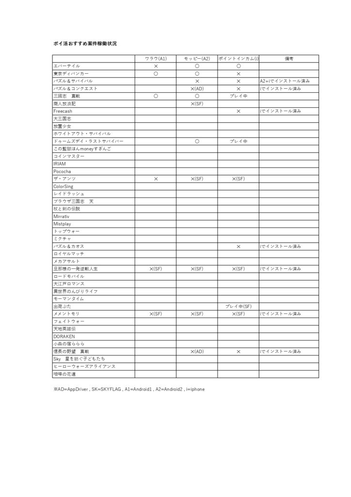 ✕がついているのは、仕組みづくりの段階で何かしらのミスでポイ活サイトの獲得案件から外れてしまったもので挑戦不可。